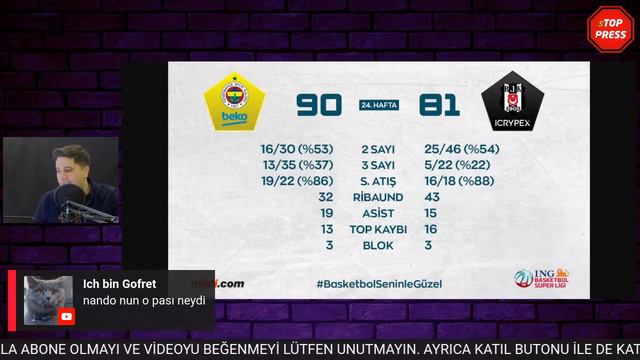Fenerbahçe Beko - Beşiktaş Icrypex Maç Yorumu Darüşşafaka - Anadolu Efes Maç Yorumu Türk Telekom - Gaziantep Basketbol Maç Yorumu Basketbol Süper Ligi Kümede Kalma Savaşı Basketbol Süper Ligi Playof...