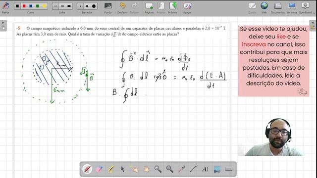 Nesse vídeo resolvemos o problema 05 do cap32 do livro Física - Vol 2 do Halliday 10 Edição. 05. O campo magnético induzido a 60 mm do eixo central de um capacitor de placas circulares e paralelas é 2...