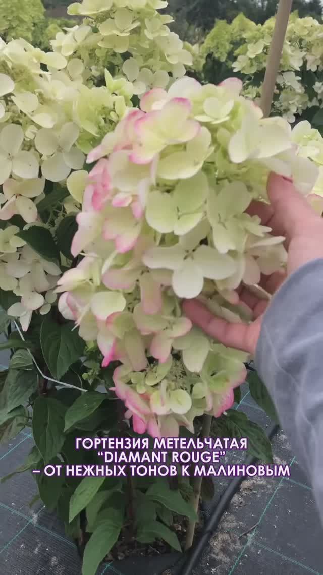 Гортензия метельчатая Diamant Rouge эффектный сорт с крупными соцветиями и выразительной сменой окраски. В начале цветения она мягкая и светлая а к осени постепенно уходит в насыщенные малиново-карминн...