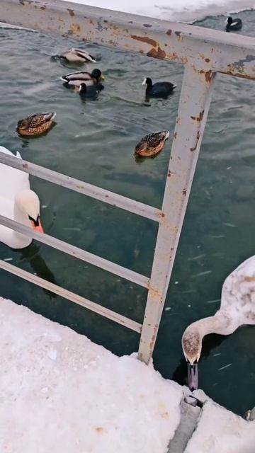 Лебеди и утки на Чомга - острове зима 2026 activevibesbelarus Беларусь зима чомга остров автор видео ActiveVibesBelarus загружено на рутуб 2026-02-08