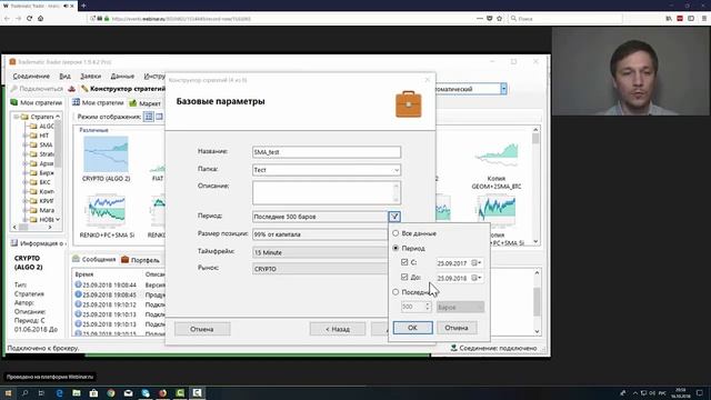 В этом видео показан весь функционал необходимый для быстрого старта: - Кнопки главного интерфейса - Создание торговой стратегии в Конструкторе стратегий - Тестирование стратегии на исторических данных ...