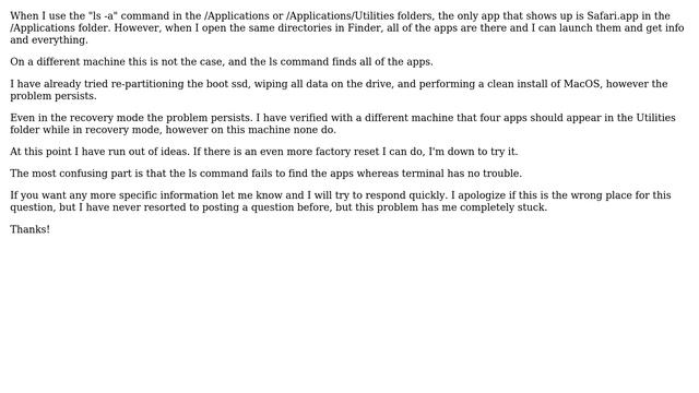 Unix Linux: ls command does not show app files in Applications or Utilities folders but Finder shows the apps macOS Catalina Helpful? Please support me on Patreon: With thanks praise to God and wi...